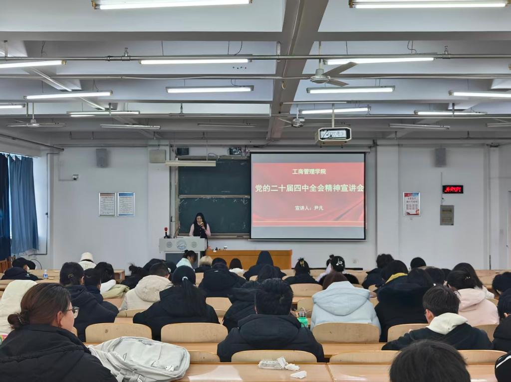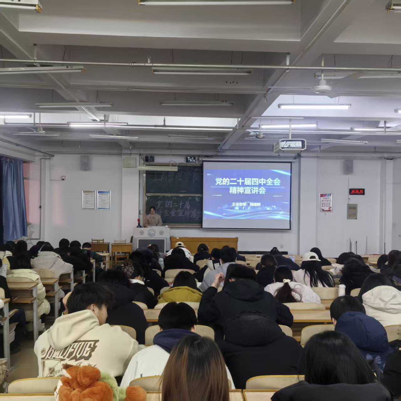 为深入学习贯彻党的二十届四中全会精神,切实把全院师生的思想和行动统一到党中央决策部署上来,从12月1日至4日,学院成立由党委书记和各基层党支部书记组成的宣讲团,为学院879名师生相继组织了4场面向全院师生开展全覆盖、深层次的专题宣讲,推动全会精神进校园、进课堂、进师生心田,为学院对接学校“十五五”发展规划、落实学校总体发展战略注入强劲思想动力。